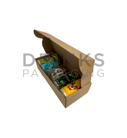 Our Kraft 4 Can and Glass Gift Box for 330ml or 440ml cans has a fitting which securely holds 4 cans and a Mencia or Harmony glass in place. The insert folds to hold the different can and glass combinations, and the compartments could also be used for snacks or merchandise. An outer shipping box which exactly fits this gift pack is also available. This box is made exclusively from high-quality FSC sustainably sourced board that is 100% recyclable after use. |